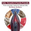 Experience effortless ironing with the Hamilton Beach Steam Iron featuring advanced iSense Technology. This fully automatic steam iron intelligently controls temperature based on fabric type—no manual selection, no burns, no guesswork. Equipped with a ceramic coated soleplate and 353 steam holes, it delivers 45g/min continuous steam and a powerful 180g steam burst. Use it as a dry iron, steam iron, or vertical steam press. Includes a large 350ml tank, motion-based auto standby, and anti-burn safety. Perfect iron for clothes, sarees, daily outfits, and more.