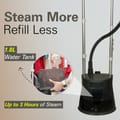 Get a professional, wrinkle-free finish at home with the Hamilton Beach Stand Garment Steamer. This steam iron with stand heats up in 20 seconds and delivers 45g/min steam output. Features include a height-adjustable double pole, 3-angle ironing board (45°, 90°, 180°), and 5 steam levels for all fabric types. With a 1.8L tank for up to 3 hours of use, anti-calc protection, auto shut-off, and included accessories, it’s the perfect steamer for ironing clothes safely and comfortably.